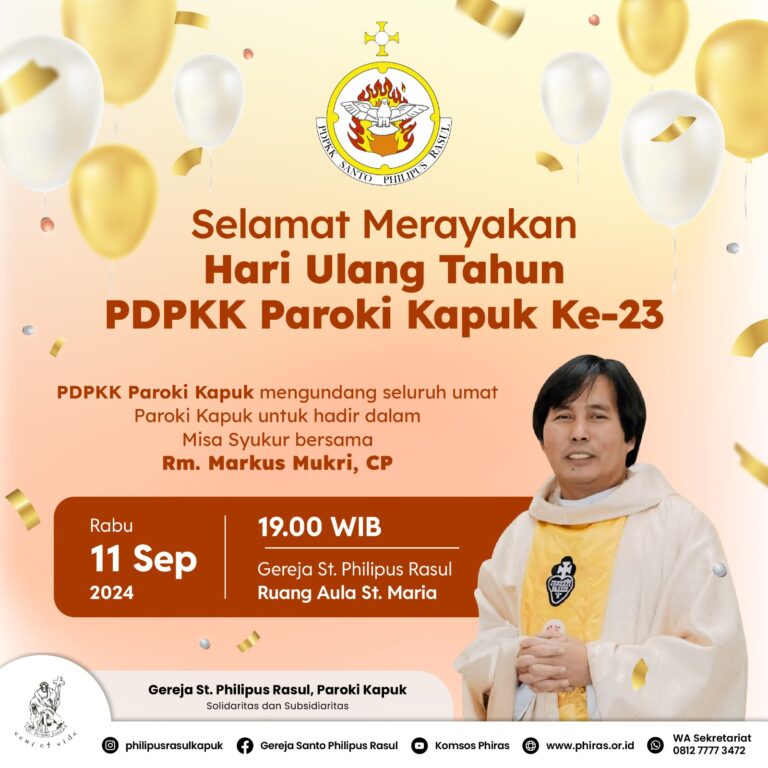 Shalom….🥳🥳 PDPKK. Philipus Rasul mengundang …. Romo, bapak/ibu, Sdr/i untuk hadir dalam Misa Syukur HUT ke 23. 🎊Misa Syukur dipersembahkan oleh Rm.Markus Mukri CP. pada...