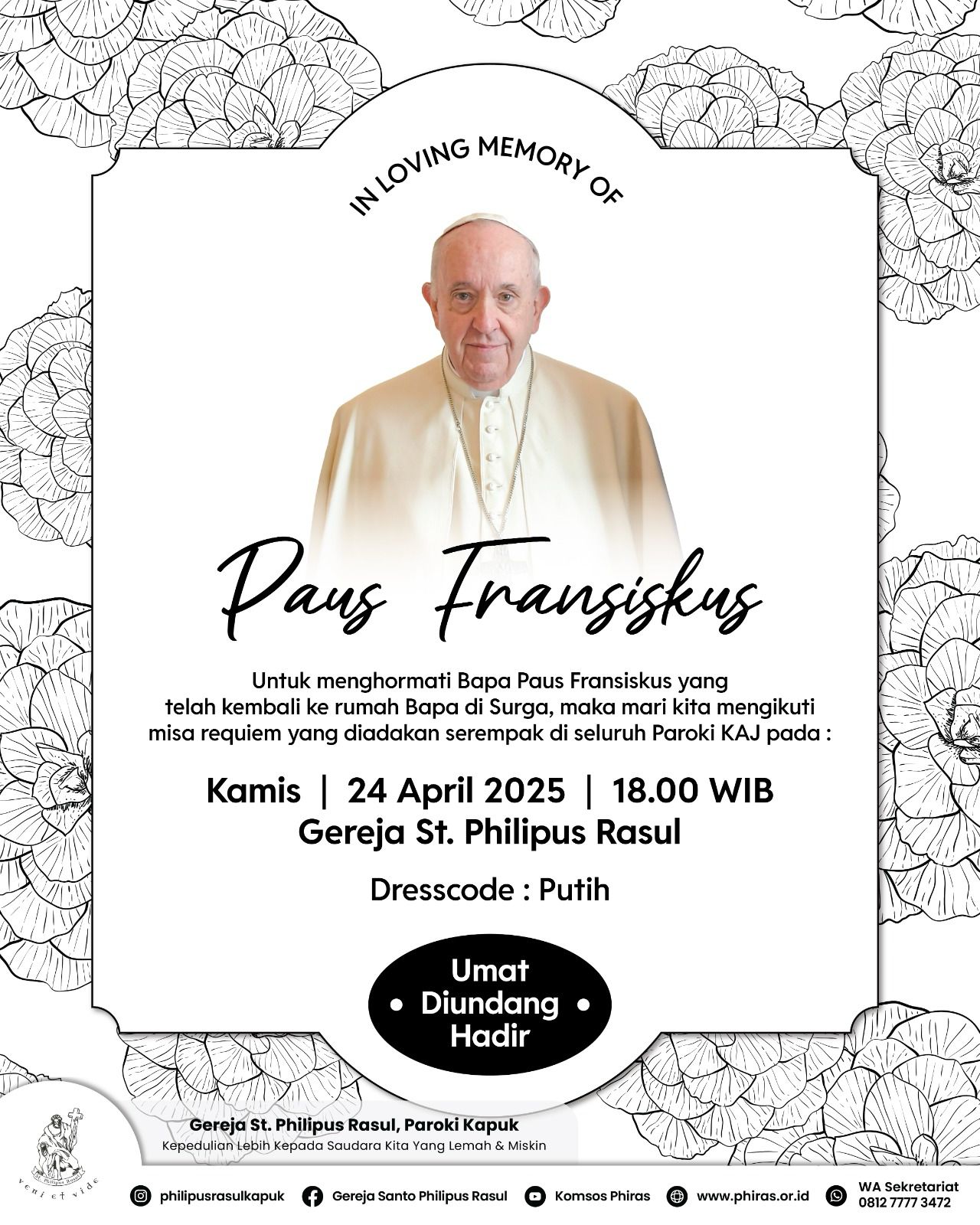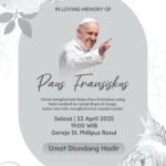 Untuk menghormati dan mengenang Bapa Paus Fransiskus yang telah kembali ke Rumah Bapa di Surga, pada hari Senin, 21 April 2025, Pukul 07.35 waktu Roma.